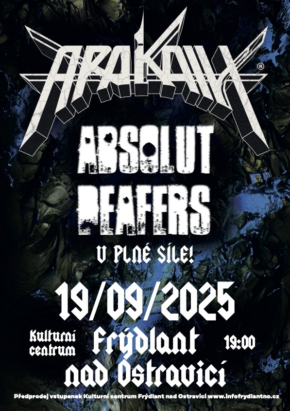 Dvě osvědčená jména české metalové scény se znovu setkají. ARAKAIN a ABSOLUT DEAFERS se po deseti letech vrací na jedno pódium a slibují návrat ke skvělé atmosféře a silným zážitkům. Jedná se o osvědčenou kombinaci, na kterou se členové obou kapel hodně těší a fanoušci nepřijdou zkrátka. Společný koncert se uskuteční 19. září v Kulturním centru ve Frýdlantu nad Ostravicí.